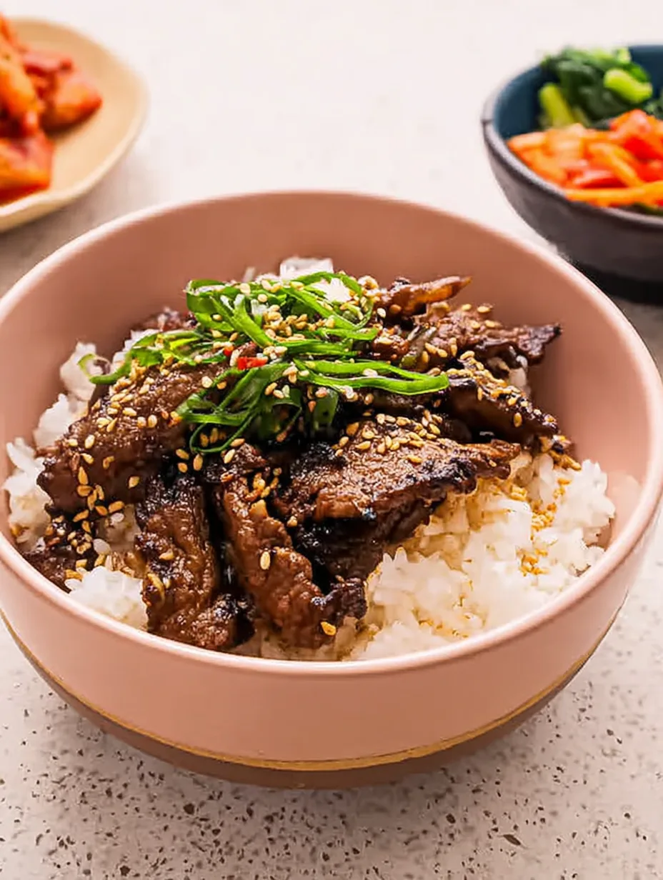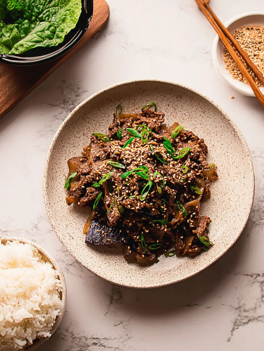 Enfin, accompagne ton Bulgogi d’un riz chaud ou de nouilles soba pour un plat complet et équilibré. En quelques gestes, tu transformes cette recette coréenne en un dîner élégant et rapide, parfait pour surprendre sans stress.