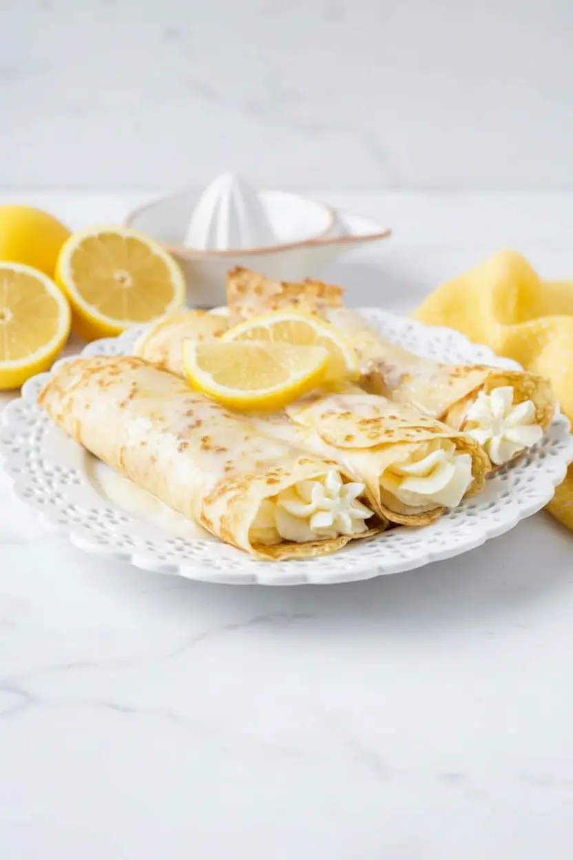 Des crêpes fines et légères garnies d’une crème onctueuse au citron, un dessert gourmand et rafraîchissant parfait pour les occasions spéciales.