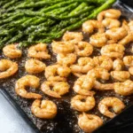 Le four fait tout le travail : les crevettes deviennent tendres et légèrement colorées, les asperges restent croquantes, et le parfum qui s’en dégage annonce un vrai plat de plaisir.