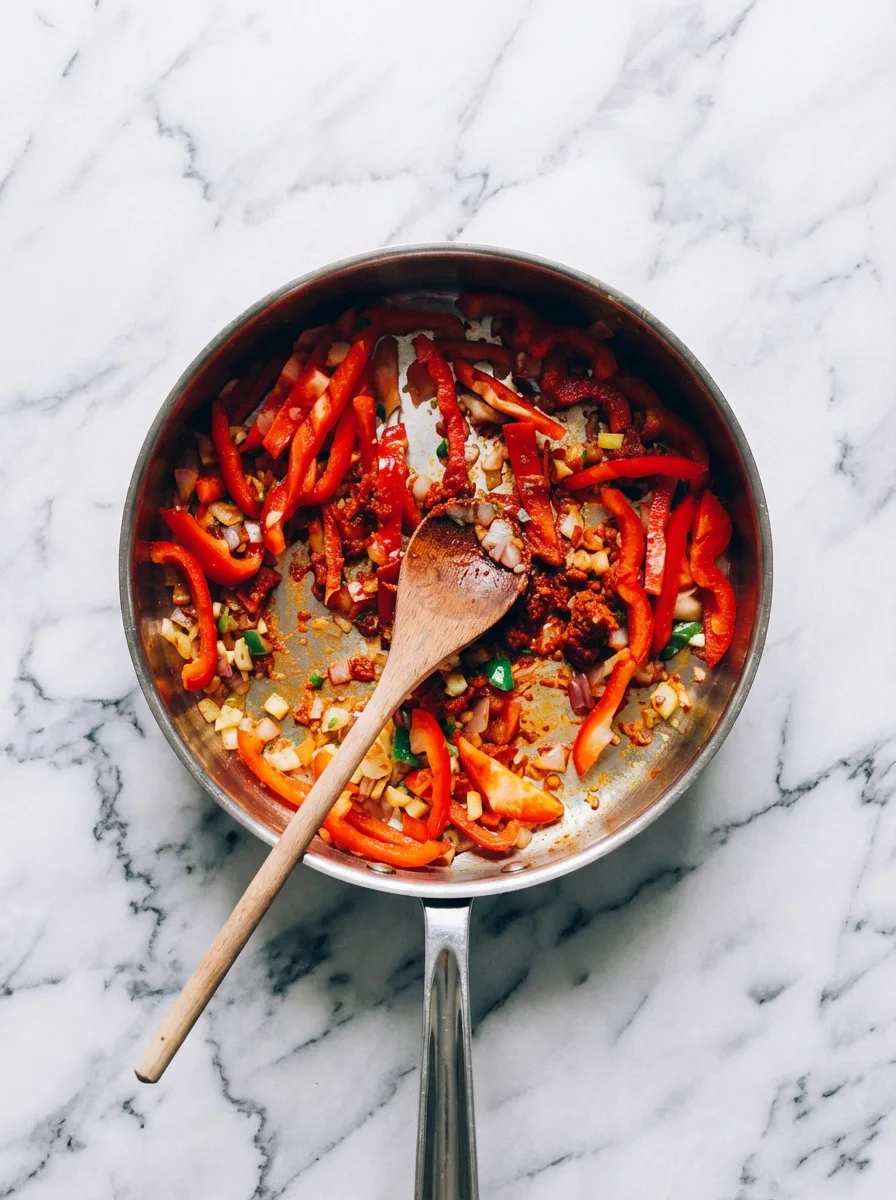 - Laisser mijoter 5-10 minutes, assaisonner avec sel, poivre et piment.