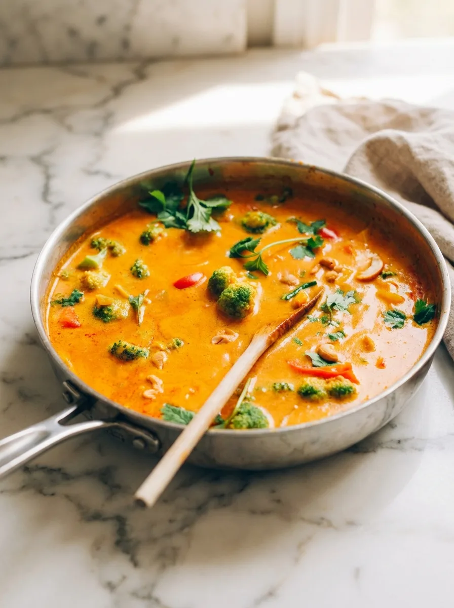 Cette préparation séduit par sa simplicité et son équilibre gustatif. Contrairement à de nombreux plats végétaliens, elle offre une texture crémeuse grâce au lait de coco et un moelleux exceptionnel grâce au potiron. D’ailleurs, pour varier les plaisirs, vous pouvez essayer notre délicieux curry de chou-fleur crémeux au four qui utilise des techniques similaires.