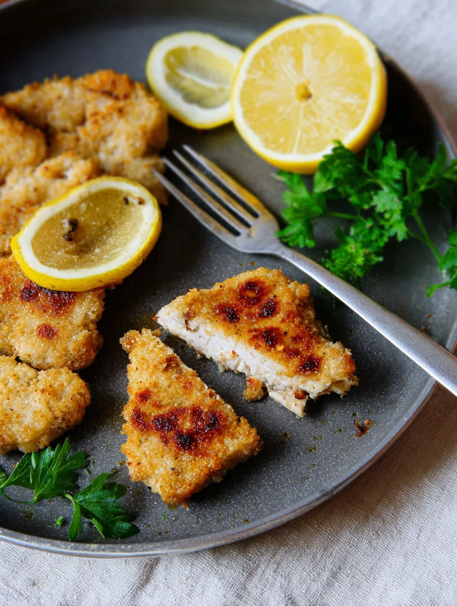 Envie d’une touche plus parfumée ? Ajoute une cuillère de moutarde douce avant la panure, ou glisse une fine tranche de fromage à pâte dure entre deux morceaux d’escalope pour une version fondante et irrésistible. Tu peux aussi varier les épices : paprika fumé, curry doux, herbes italiennes… chaque assaisonnement donne une personnalité différente à ta recette.