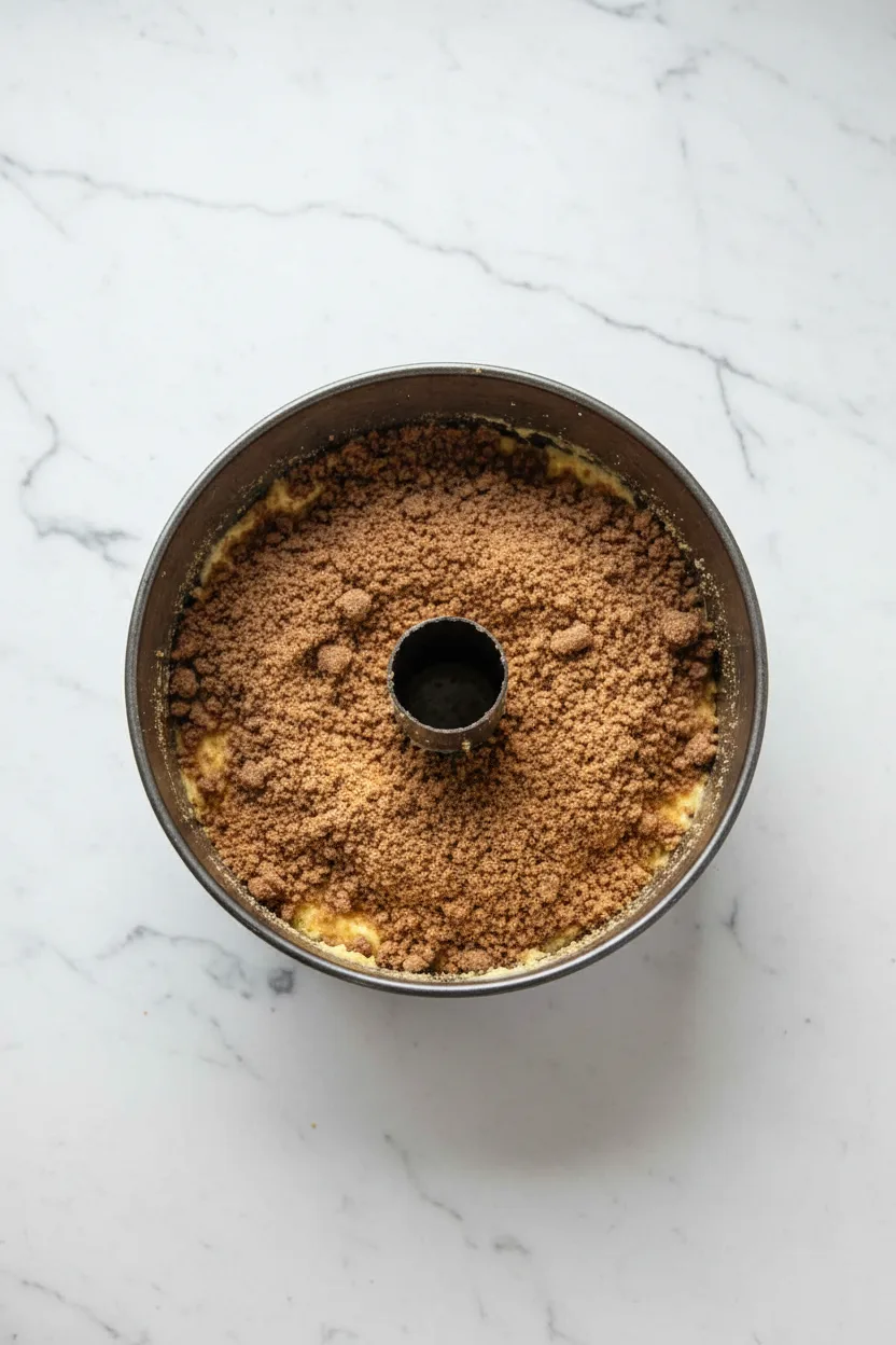 - Parsemez la moitié du streusel sur cette première couche.