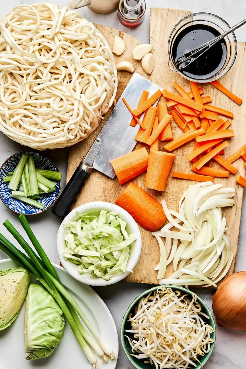 - 220 g de nouilles chinoises (yi mein, lo mein ou udon)