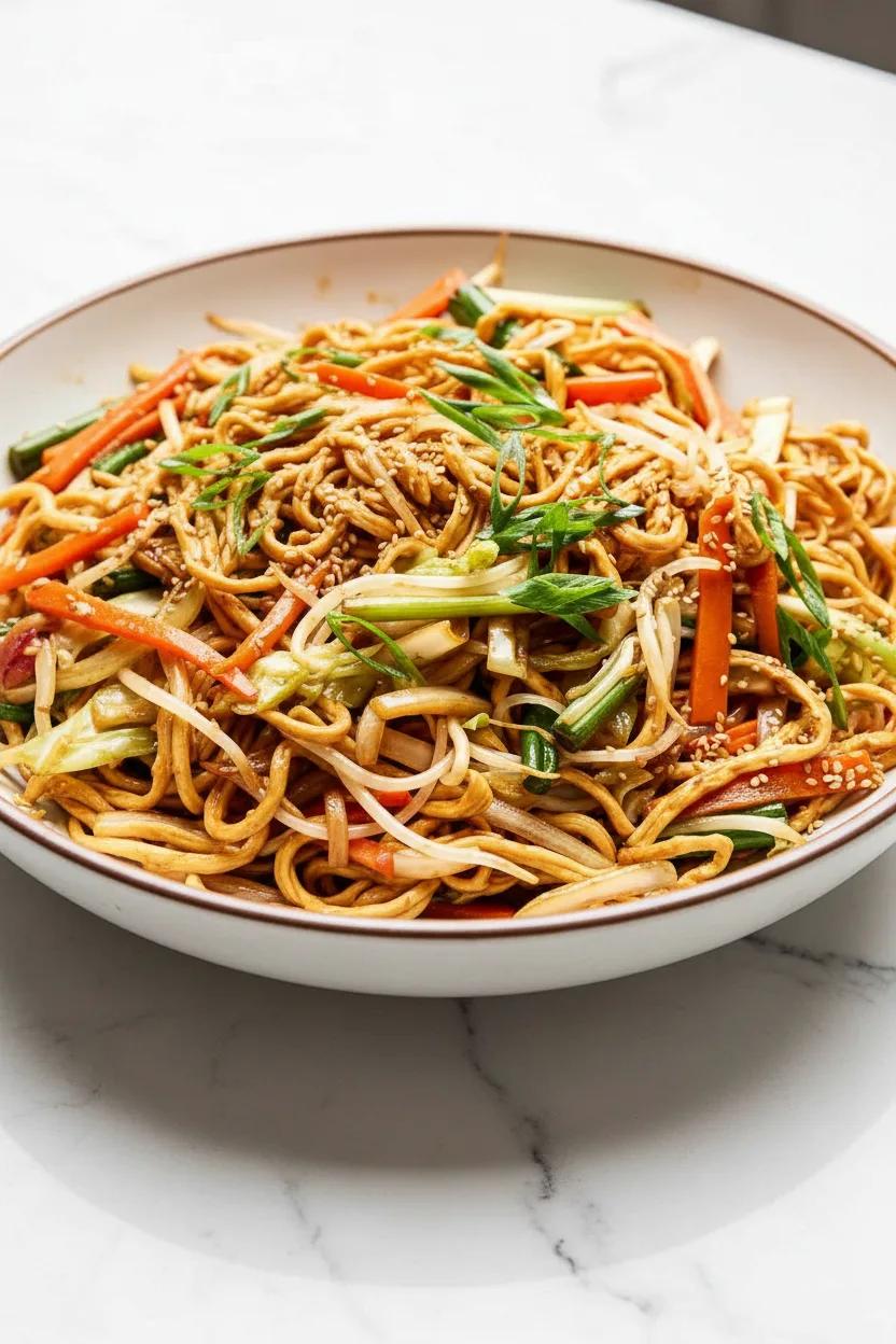 Nouilles sautées accompagnées de légumes croquants d’hiver et d’une savoureuse sauce soja, prêtes en 20 minutes
