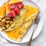 Consommez l’omelette idéalement dans les 2 heures après préparation pour préserver sa texture moelleuse. Au réfrigérateur, elle se conserve 1 jour maximum dans un contenant hermétique. Pour congeler, enveloppez chaque portion individuellement dans du film alimentaire puis placez dans un sac de congélation pendant 1 mois maximum. Réchauffez ensuite directement à la poêle à feu doux.