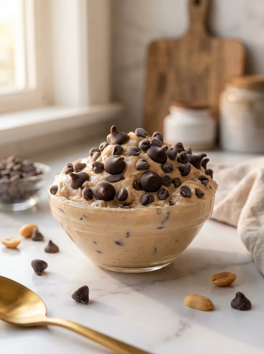 Une pâte à cookies saine au yaourt grec, prête en 5 minutes pour satisfaire vos envies sucrées avec 35g de protéines par portion.