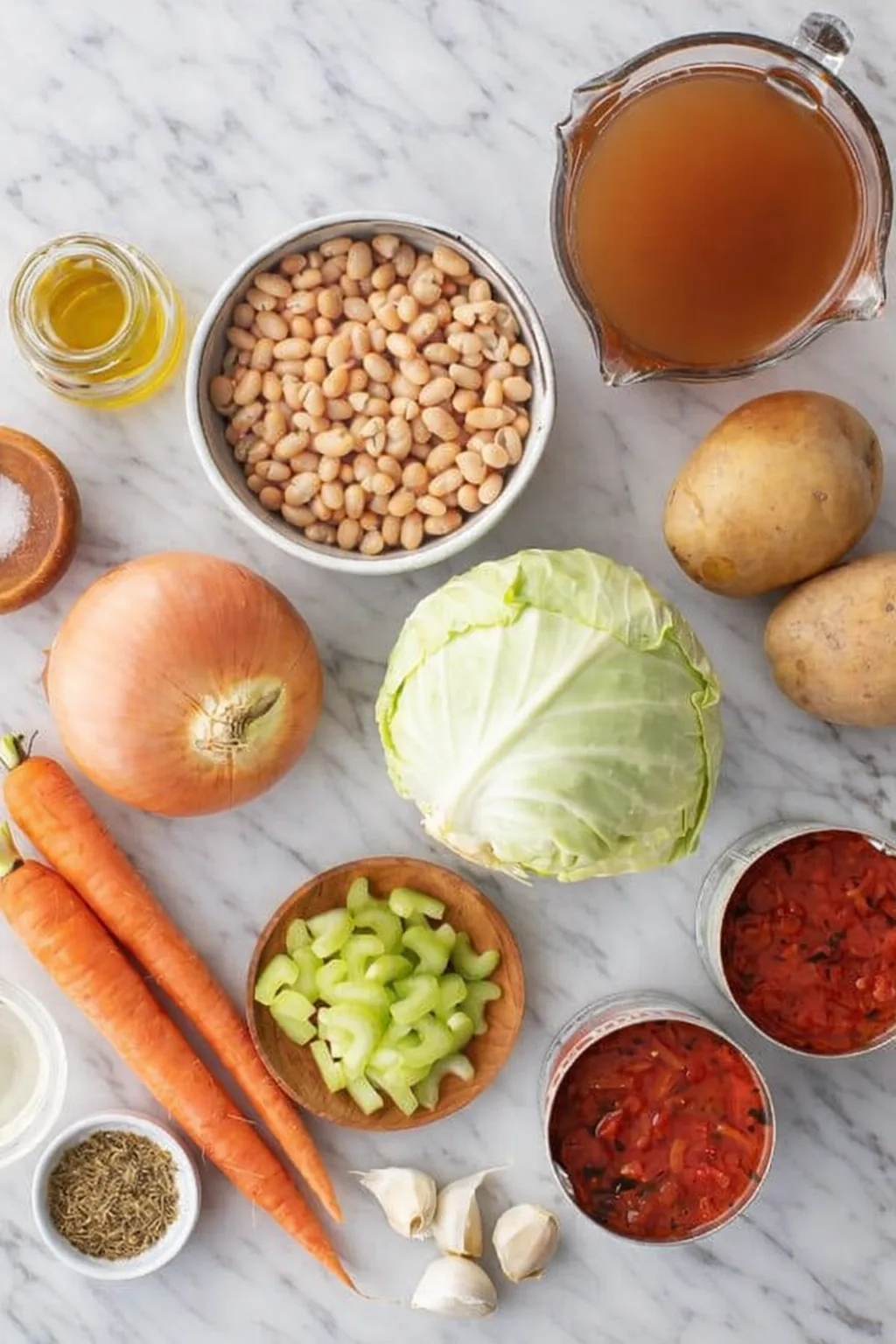 Potée végétale réconfortante avec chou, carottes et navets mijotés dans un bouillon aromatique.