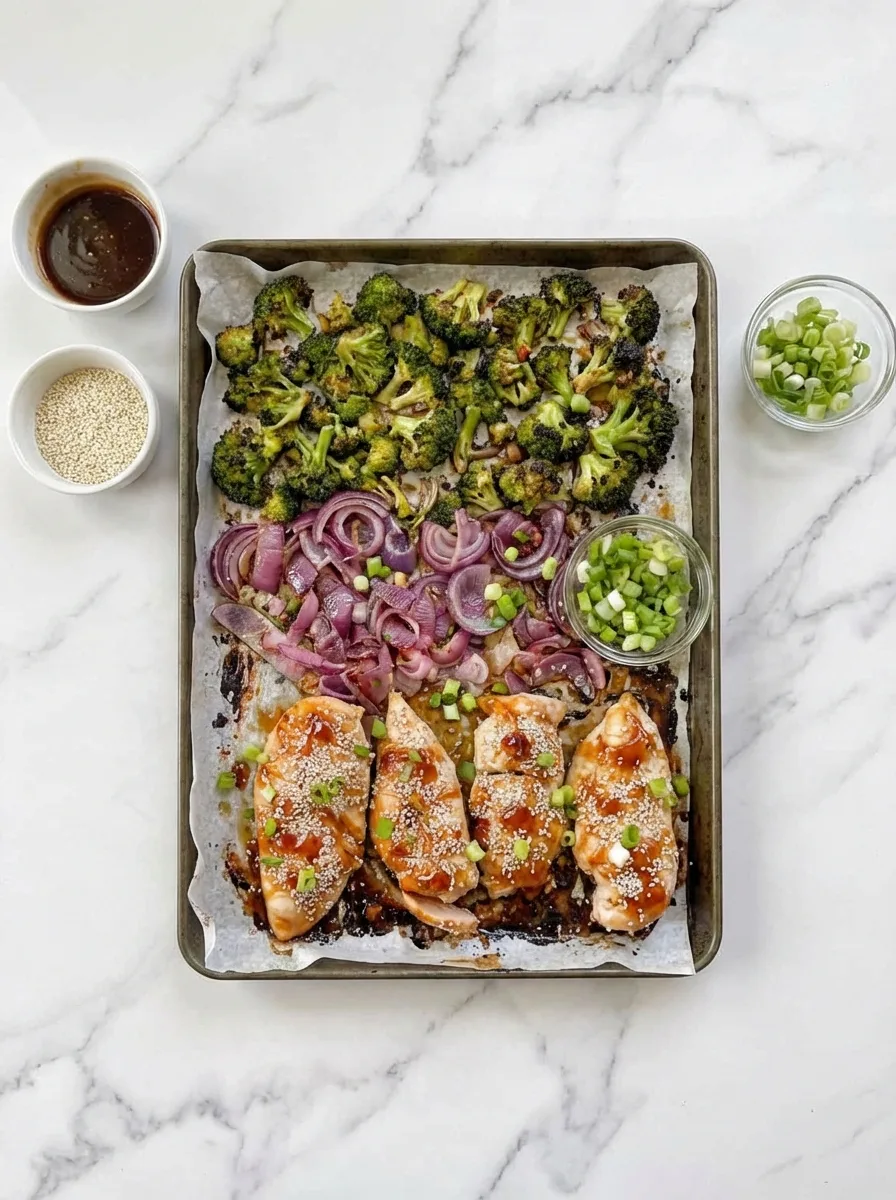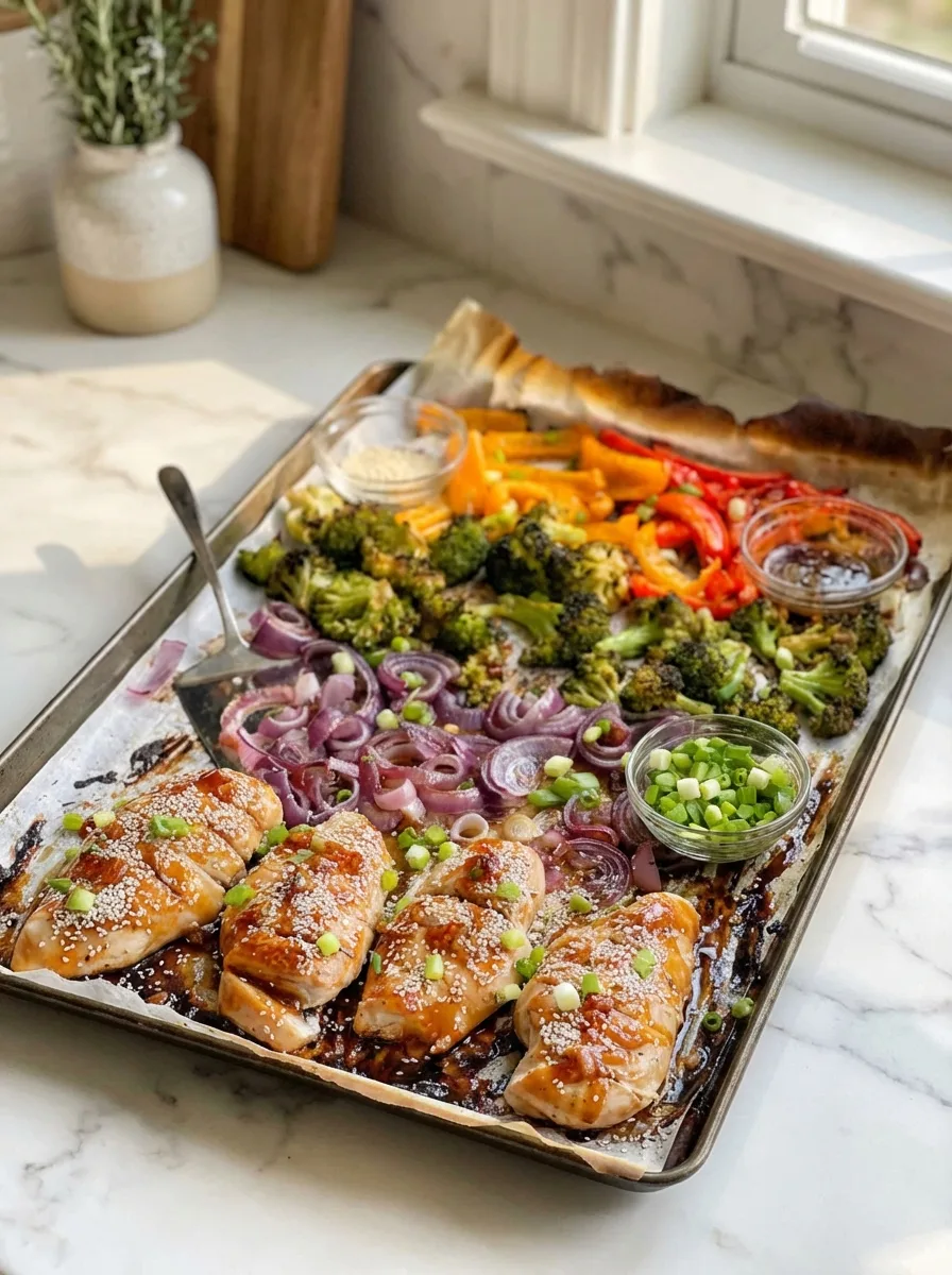 Une recette healthy de poulet teriyaki avec légumes rôtis au four, facile et rapide à préparer pour un dîner équilibré.