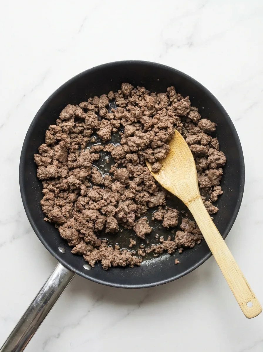 - Faites dorer le bœuf haché 6-8 minutes à feu moyen-vif. Égouttez bien.