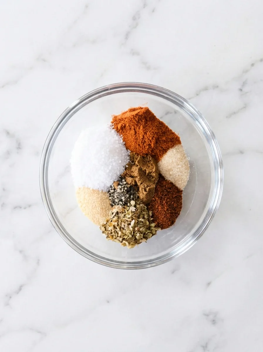 - Mélanger tous les ingrédients d’assaisonnement dans un petit bol.