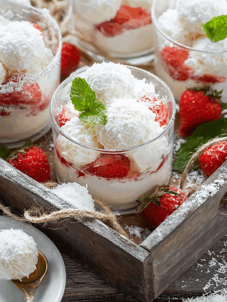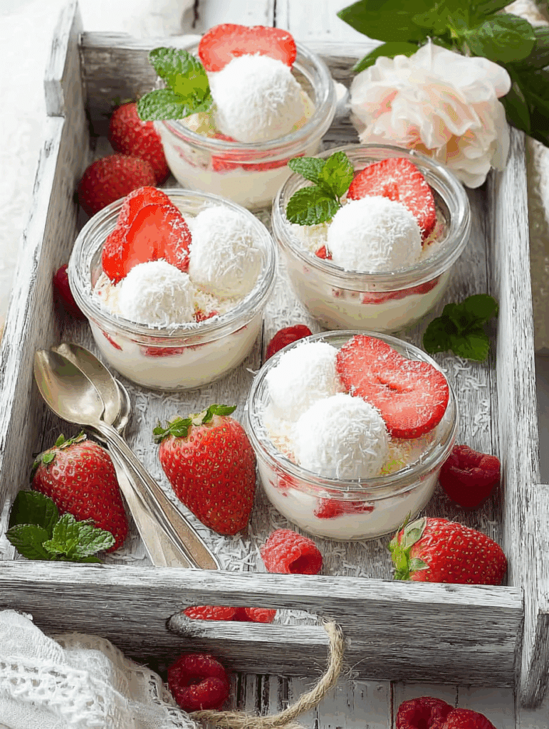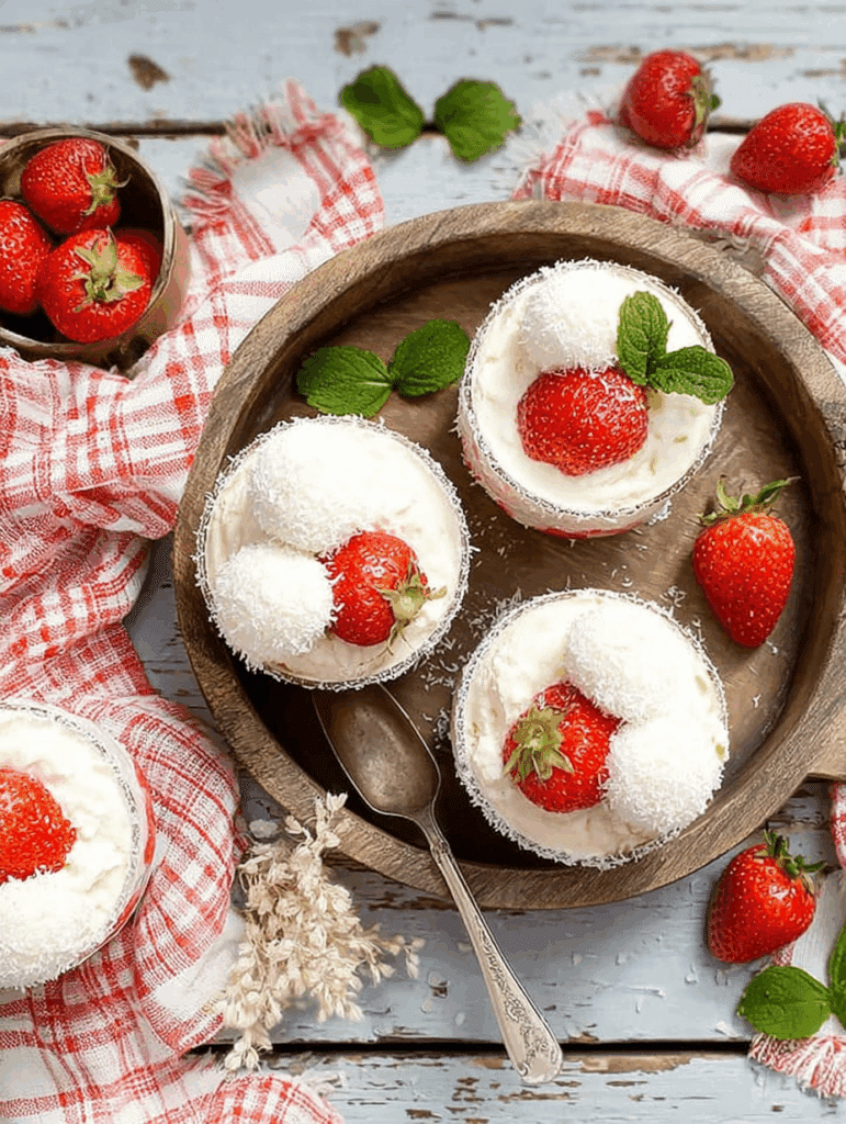 Un dessert léger et raffiné qui marie la douceur de la noix de coco et la fraîcheur des fraises. Rapide à préparer, parfait pour toutes les occasions.
