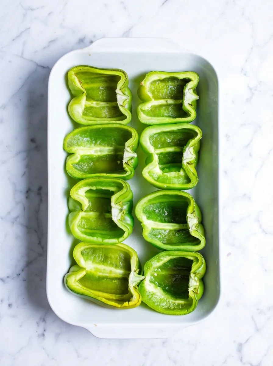 - 5 grands poivrons verts (coupés en deux, graines retirées)