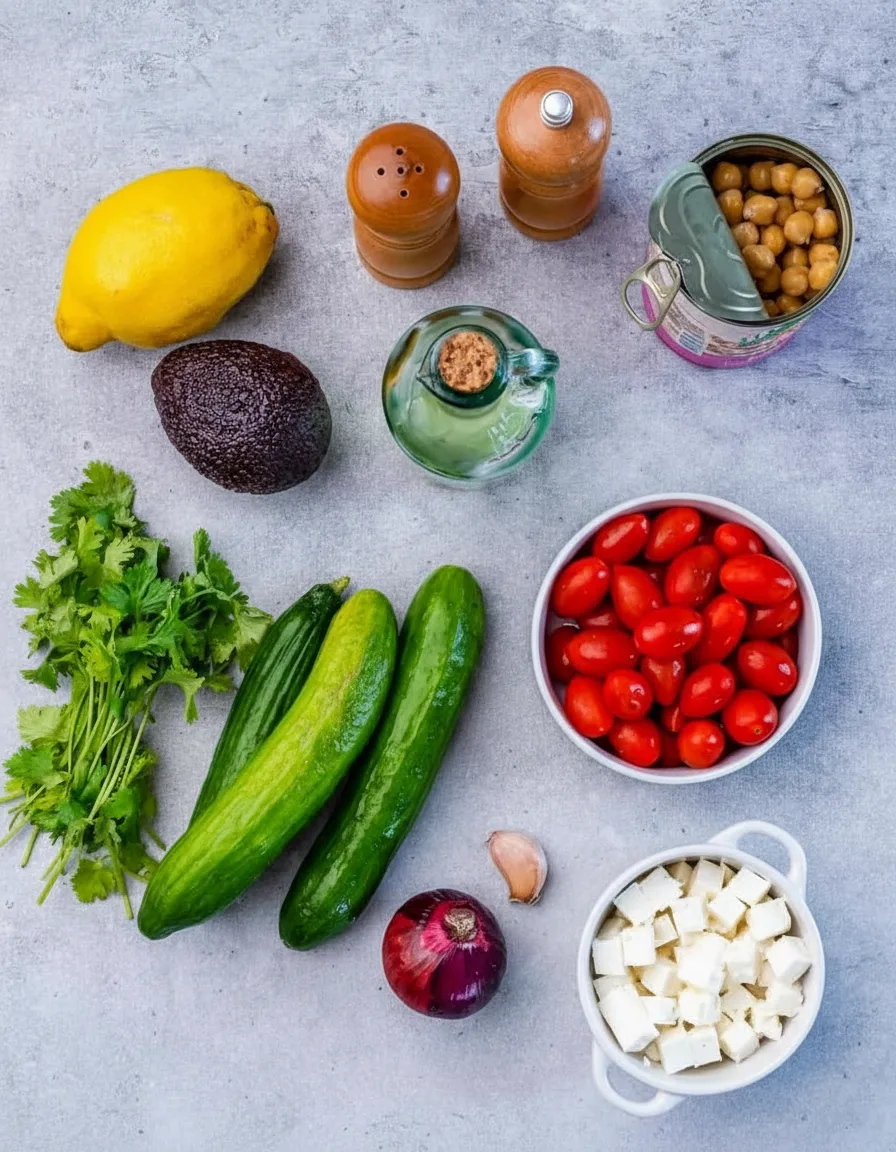 Vous cherchez un plat sain qui ne demande pas d’effort? Cette salade est la solution idéale. Les pois chiches apportent des protéines et des fibres, ce qui vous rassasie longtemps. Rfournit des graisses insaturées bénéfiques pour le cœur. La feta ajoute une touche salée et crémeuse sans être trop lourde. Par conséquent, vous obtenez un repas complet et satisfaisant.
