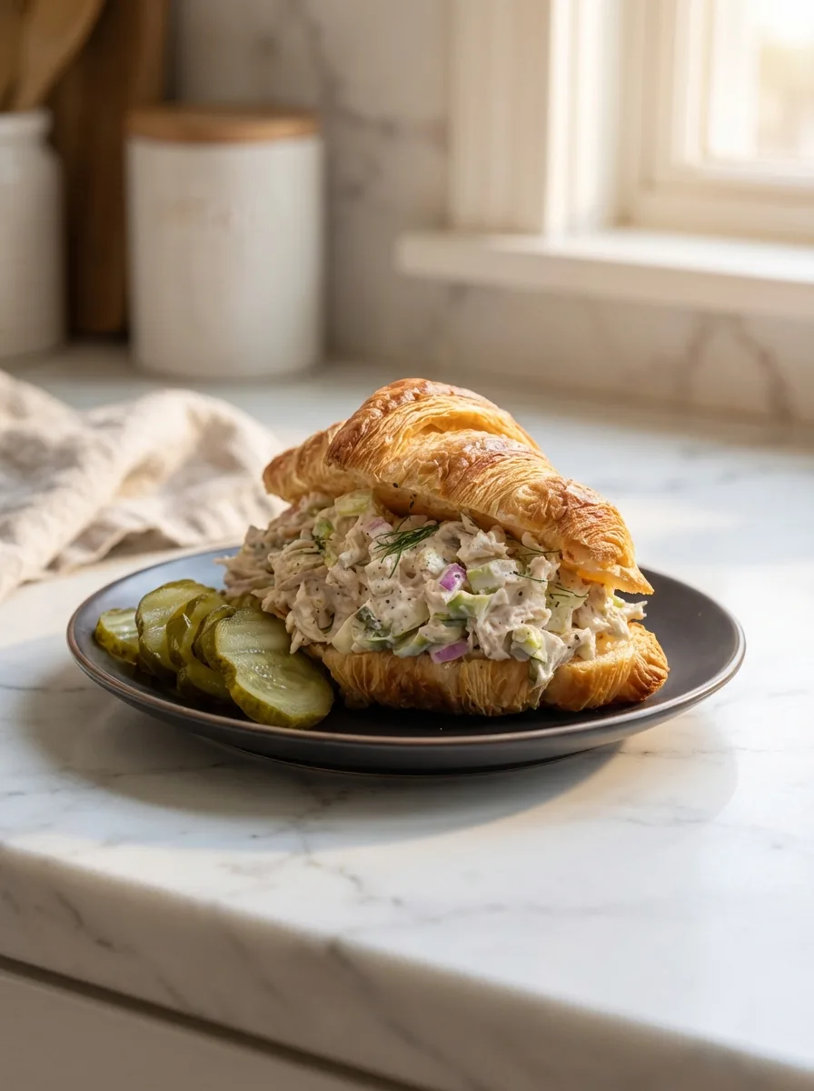 Garnissez des croissants moelleux ou des pains pita avec cette préparation. Cette version fait sensation dans les pique-niques d’été grâce à son côté pratique.
