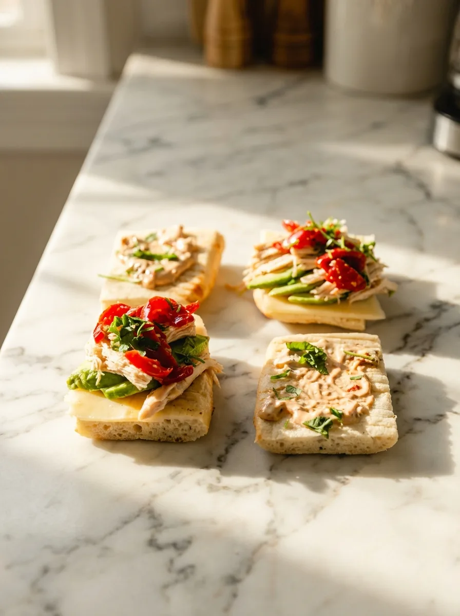 Un sandwich gourmand et rapide combinant poulet rôti, avocat crémeux et fromage fondant avec une touche épicée de chipotle.