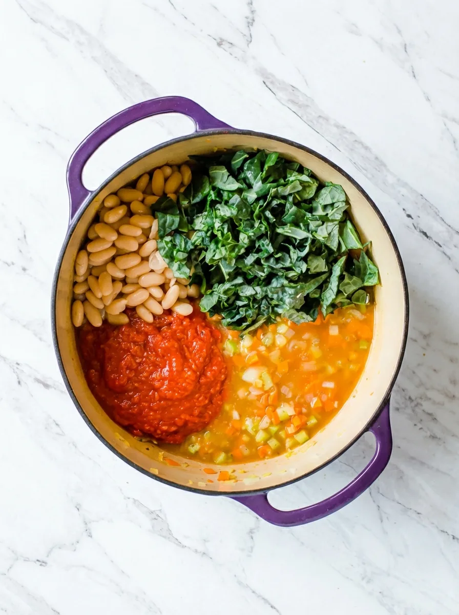Cette étape, appelée « mirepoix », crée une fondation aromatique essentielle. Une autre astuce consiste à rincer soigneusement les haricots blancs en conserve pour enlever l’excès de sodium et le liquide de conservation.